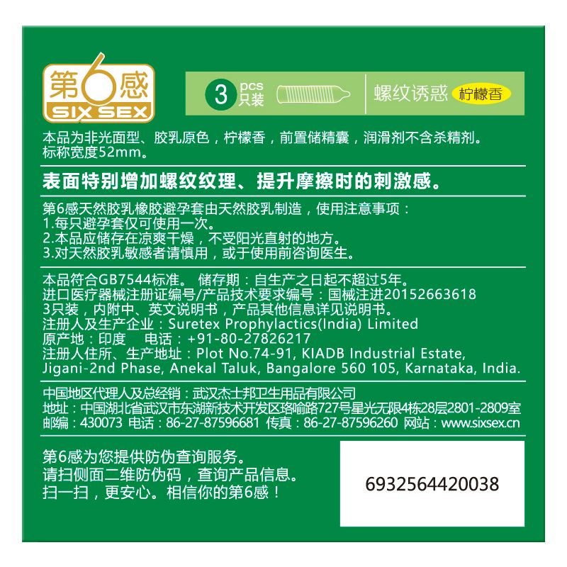 【避孕润滑】第6感螺纹3只装